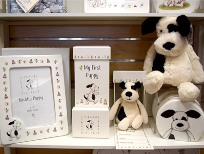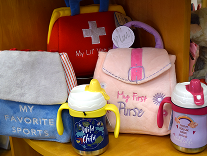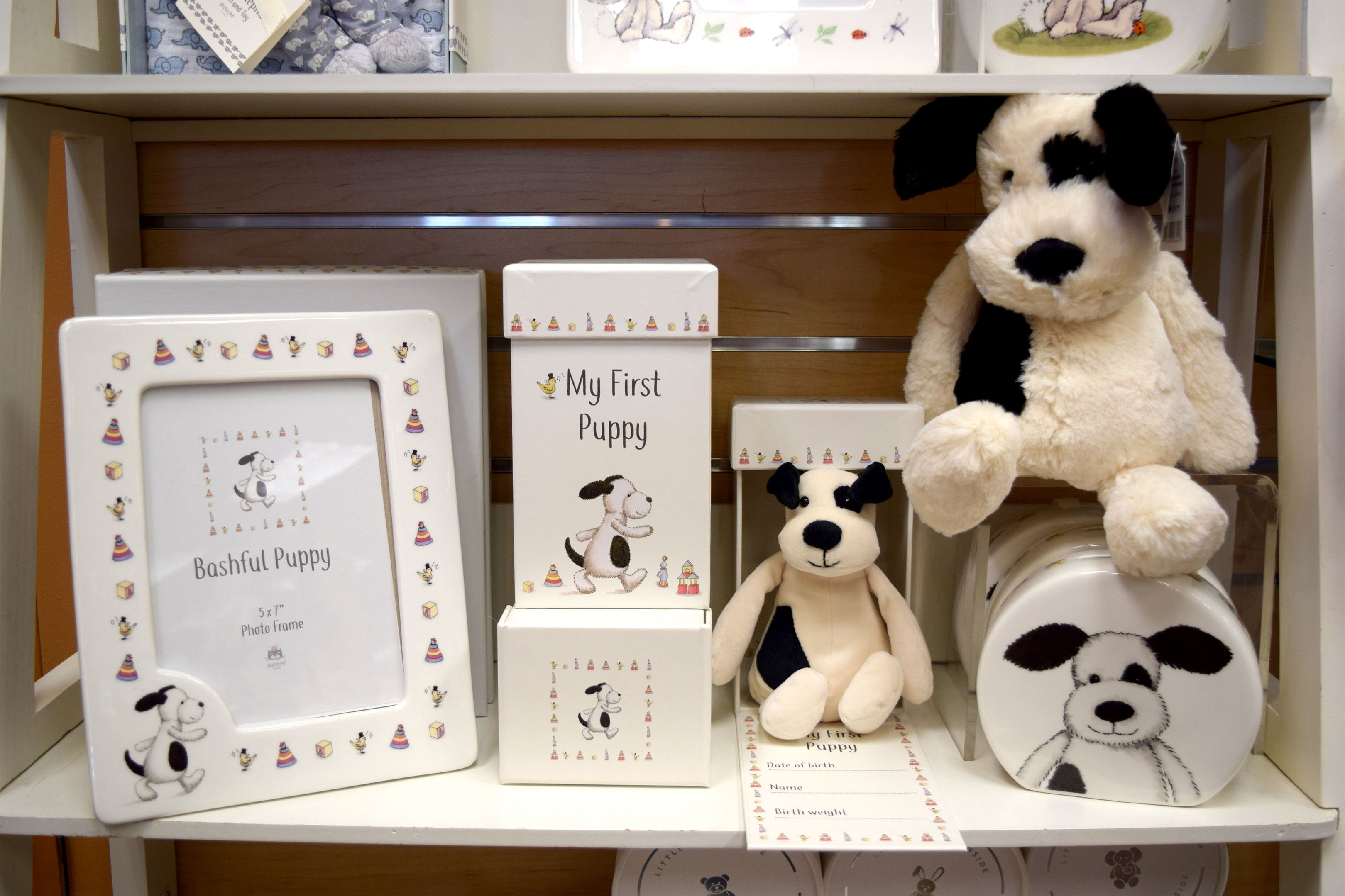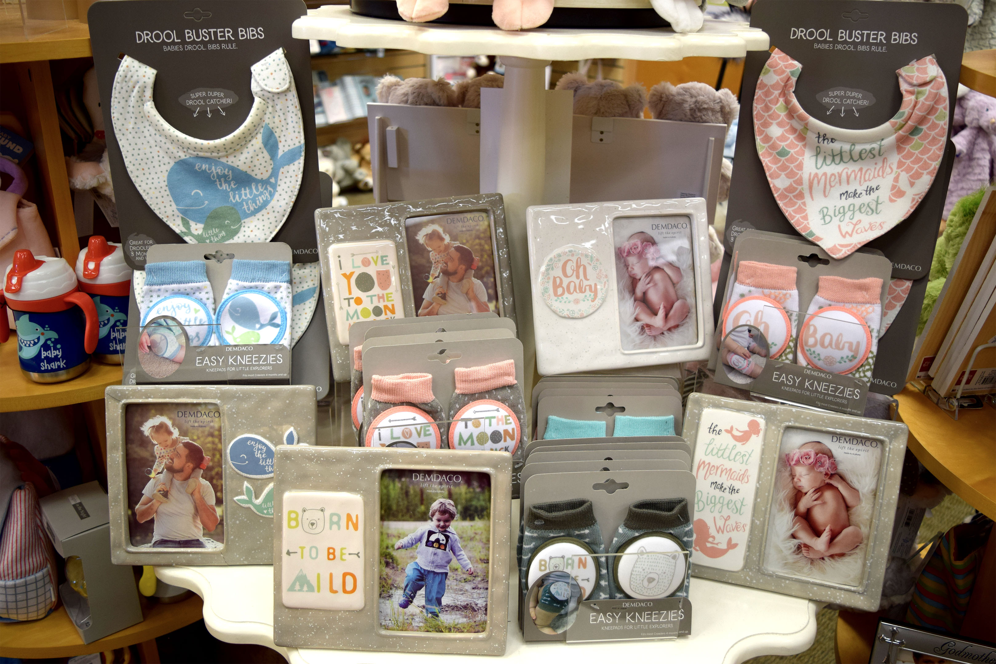 Once a beautiful new baby comes into our life we all want to celebrate. Whether it’s a new parent, grandparent, niece or nephew, maybe even your best friend or neighbor, we want to buy something sweet, and special or cute and cuddly. Shop our Baby Department to find all of these things. We have picture frames, and baby books, rattles and puppets. The softest plush and little onesies, baby banks and little enamel boxes for your first tooth and curl. Come see all the wonderful things we have for that newest edition to anyone's family.